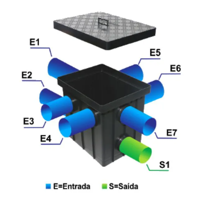UTILIZADA PARA RECOLHER DETRITOS CONTIDOS NAS TUBULAÇÕES DE ÁGUAS PLUVIAIS,E PERMITEM INSPEÇÃO DO SISTEMA.