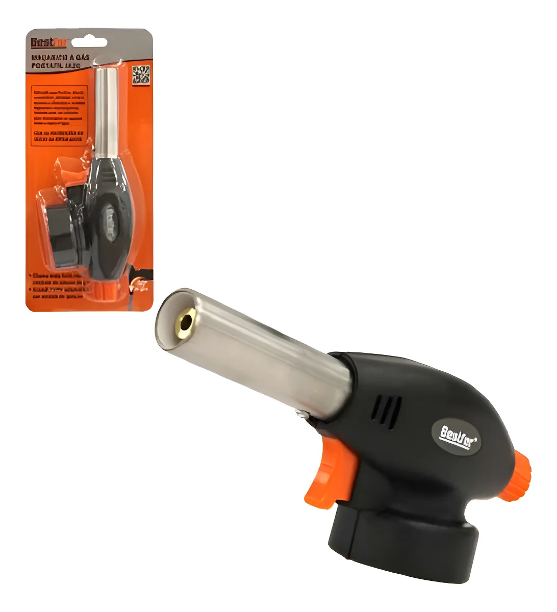 MAÇARICO A GÁS PORTÁTIL, é um equipamento que usa gás (butano ou propano) para produzir uma chama forte e controlada, usado em soldas, culinária e pequenos reparos, podendo ser transportado e usado facilmente em diversos locais.