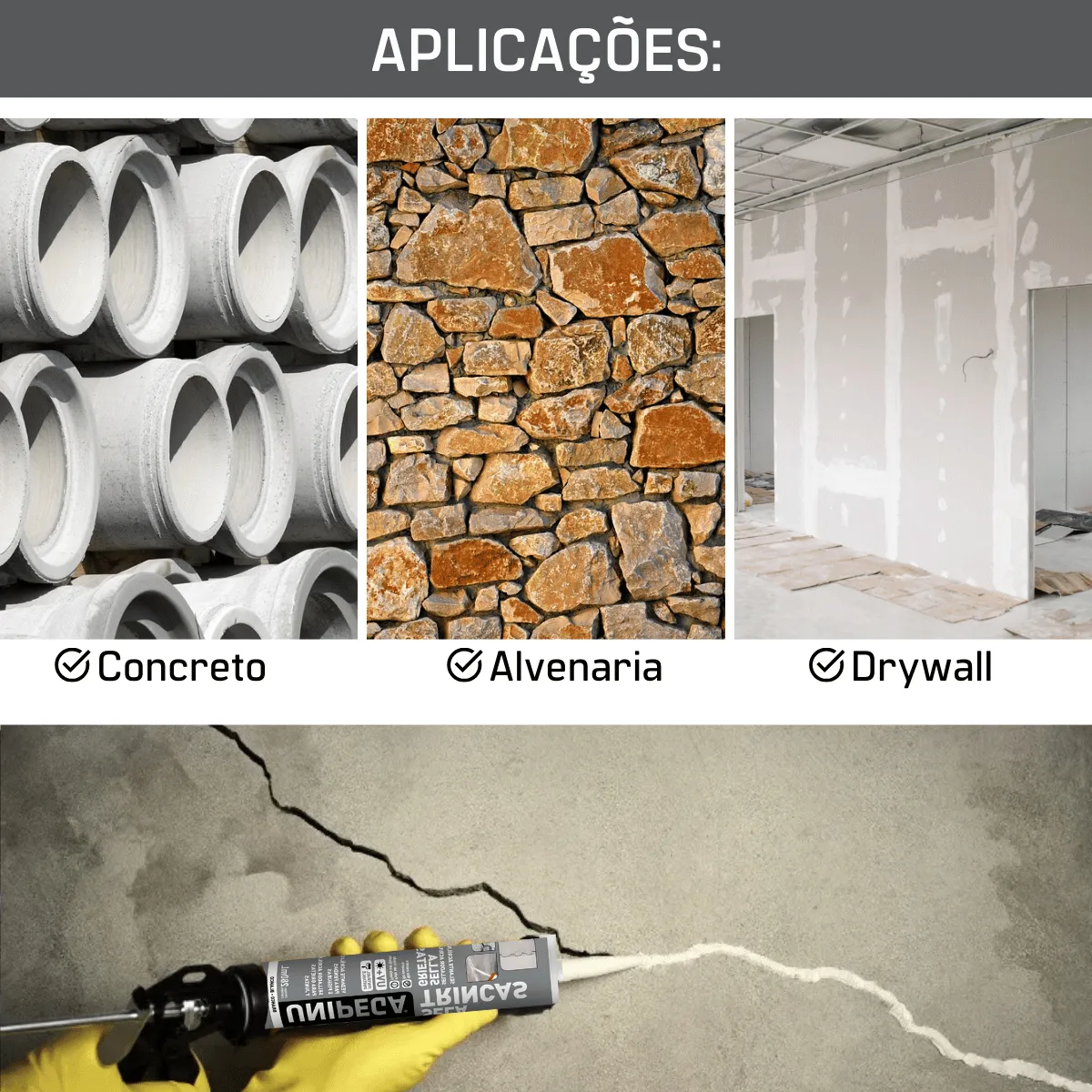 • Resistência: É resistente aos raios UV e à umidade após a cura, sendo adequado para uso em áreas externas.
